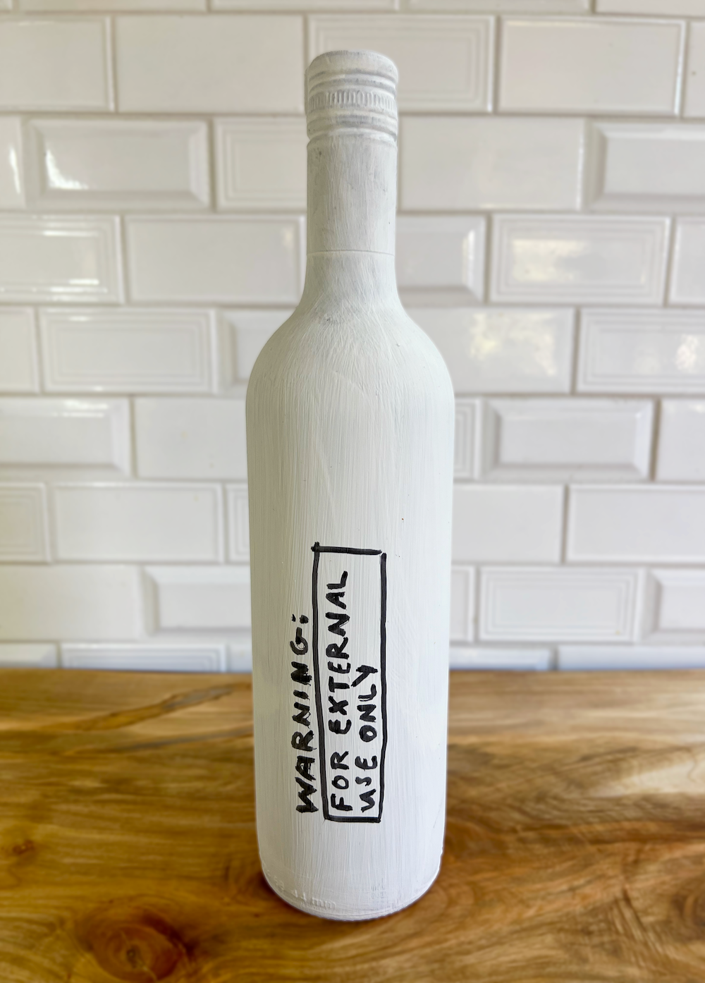 House Paint and Paint Marker on glass bottle.